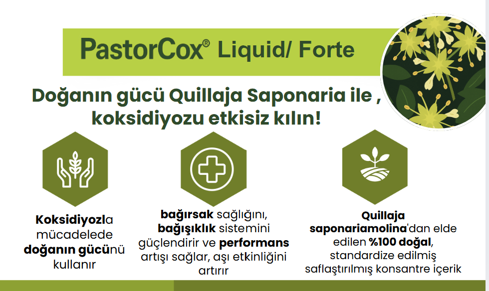 Pastoral Gıda olarak Quillaja saponinleri içeren ürünümüz PastorCox 'u Türkiye pazarındaki kanatlı üreticilerine güvenle sunuyoruz.